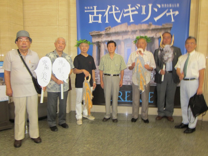 八章に分かれた展示区分。幾何学文様の時代を経てクラシック、古代オリンピック、ヘレニズム文化へ。紀元前500年頃の男性頭部の彫刻がひときわ目を引いた。ゼウスかもしれないし、ディオニソスかもしれないという解説だ。この大らかさこそ、ギリシャ文化そのもの。地上の秩序も天界の美も、すべては神々の混沌から生まれ出た。まさに神話は美の中に生きている。参加者8人。 (滑志田隆 文)次回のご案内