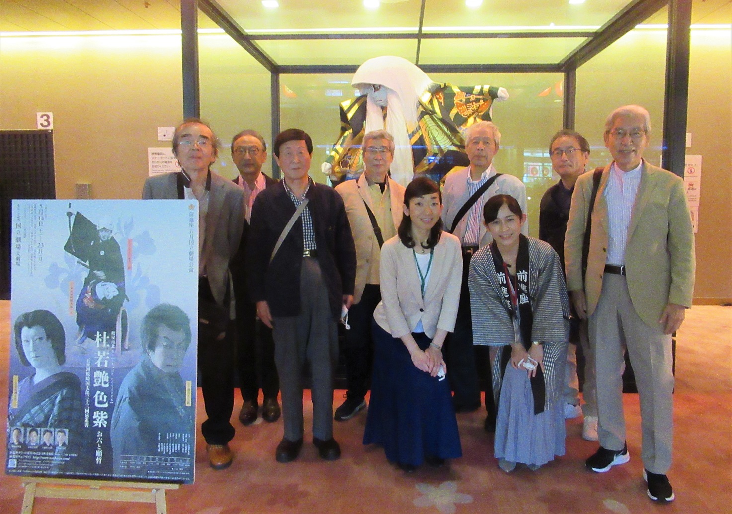 今年度第一回の観劇は、5月23日(月)国立劇場大劇場の前進座公演で今の季節にふさわしい演目「杜若艶色紫(かきつばた いろも えどぞめ・副題お六と願哲)」でした。参加者は古賀顧問を含め7名でした。