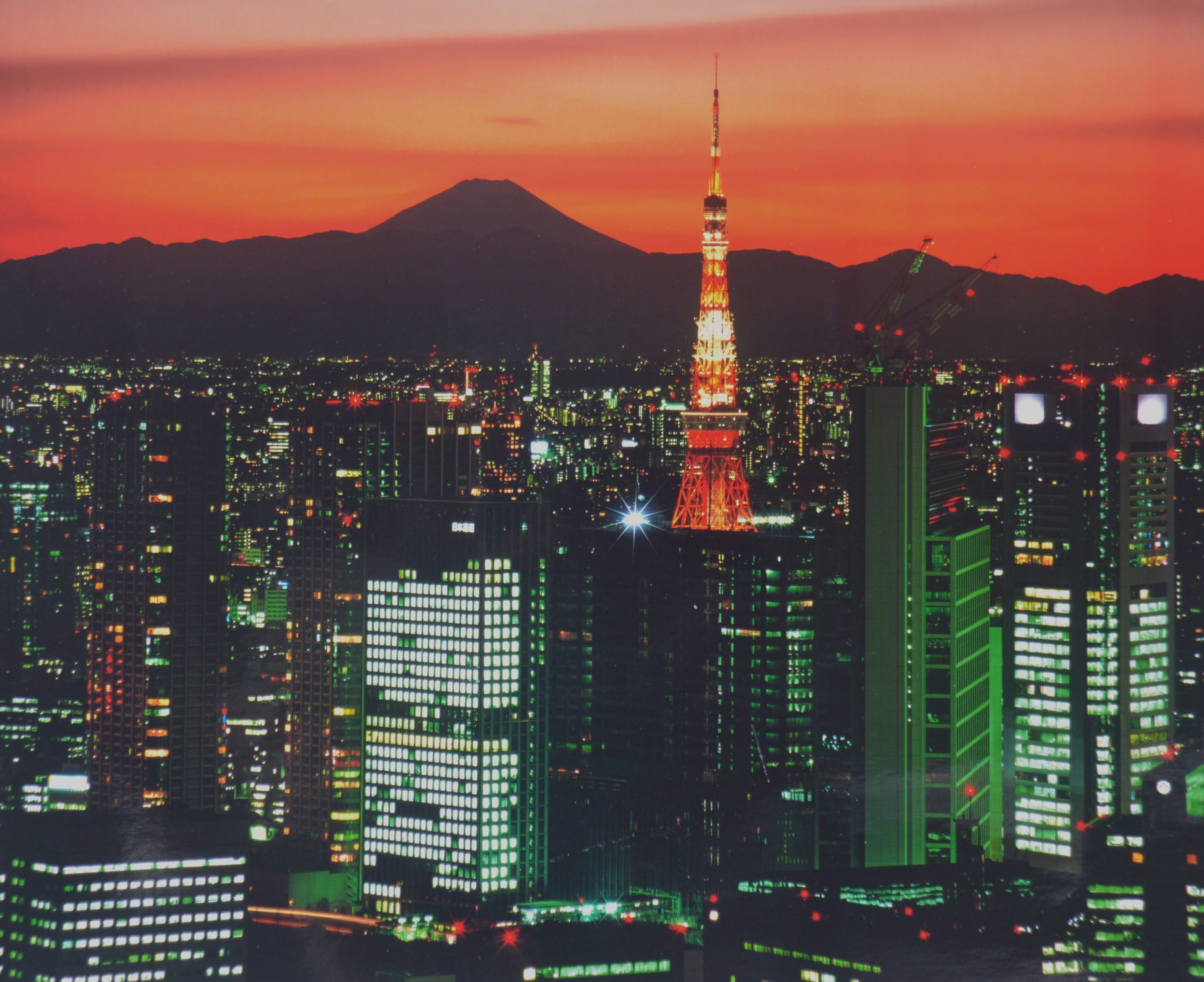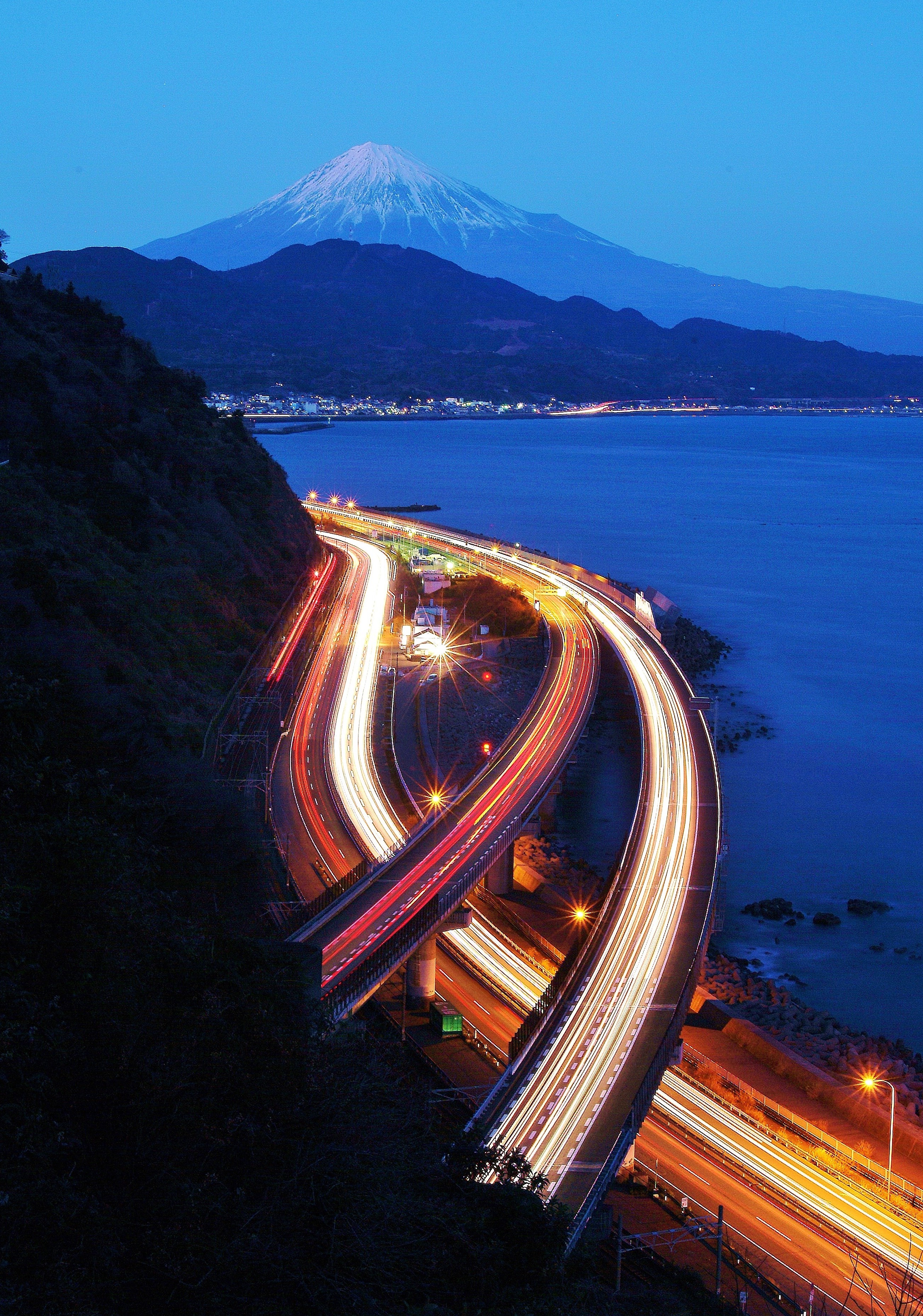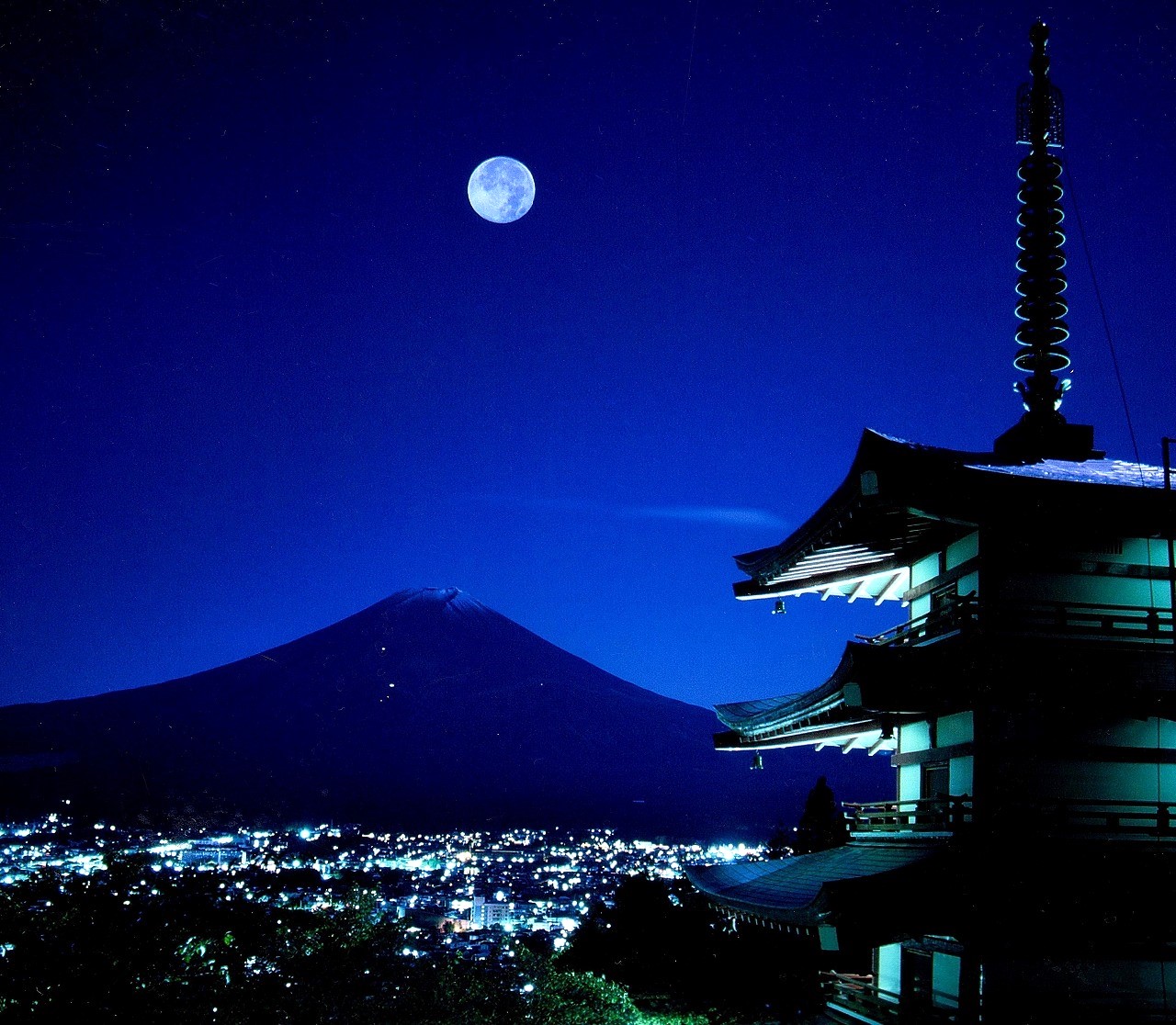 初冠雪の夜に(新倉山浅間公園 10月 月は同夜の多重露光)