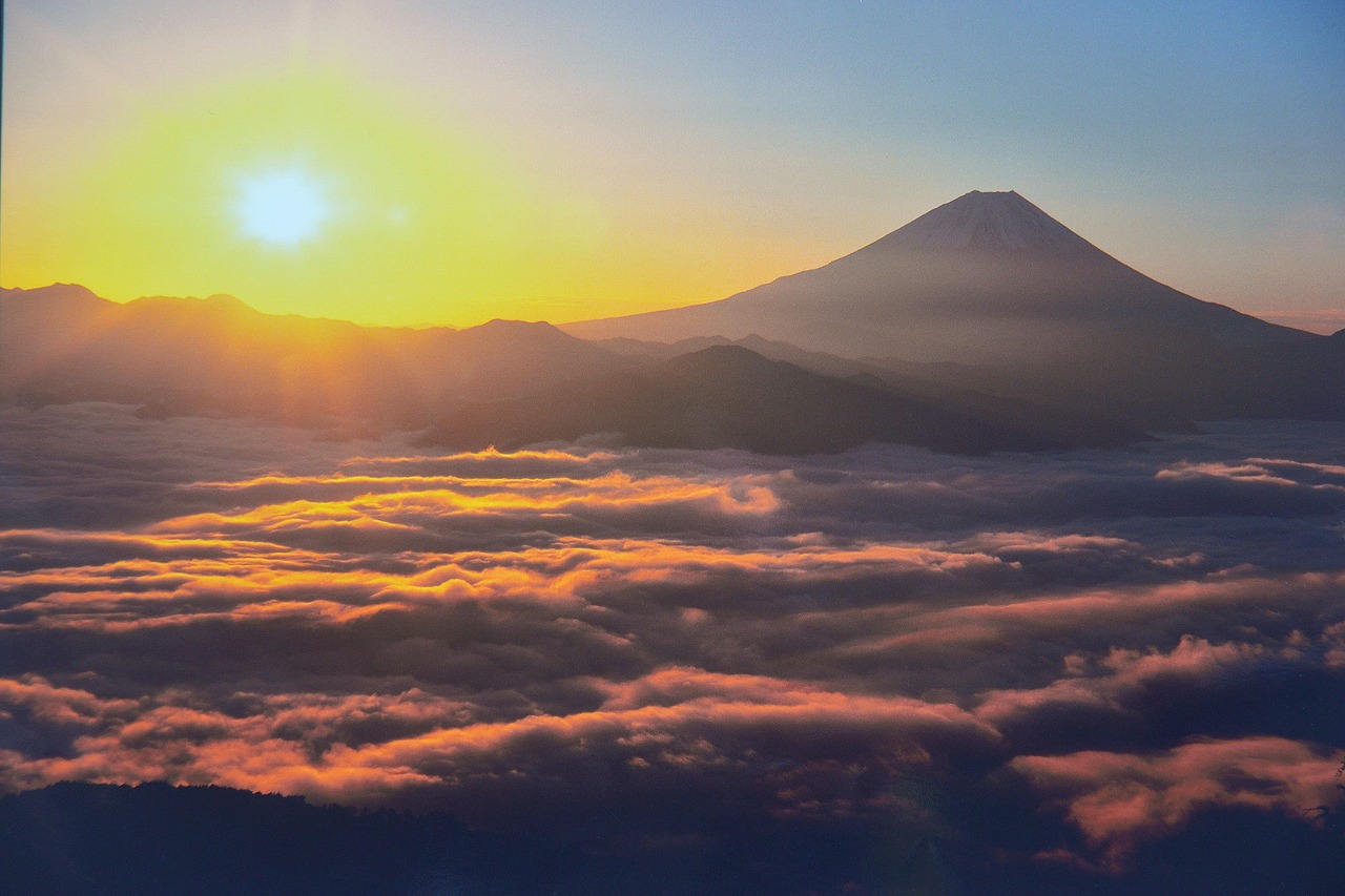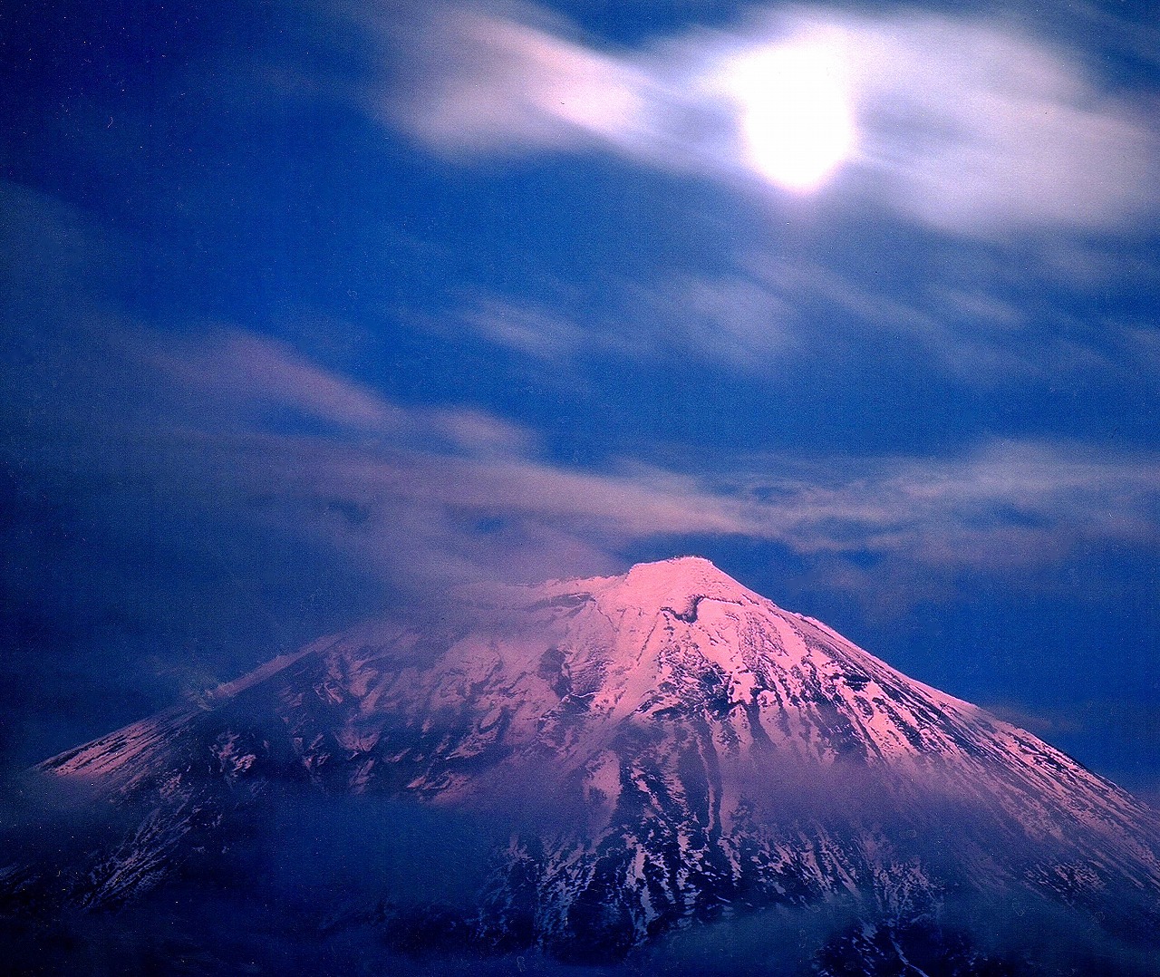 剣ヶ峰の残照(白糸の滝付近 1月)