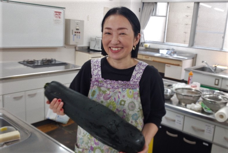 今回は杉中さんから“ジャンボ”ズツキーニの差し入れがありましたが、佐藤さんが、腕に抱えたあまりの大きさに「まるで赤ん坊のよう」の言葉に、皆大笑いです。希望者に小分けしたズツキーニのお土産が付きました。