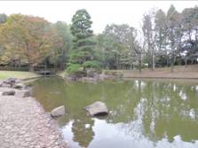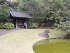一本杉公園は芝生や池があり、せせらぎが流れる静かな公園である。旧有山家や旧加藤家など江戸時代に建てられた多摩の民家が復元されている。ちょうど昼時だったので、池のほとりの芝生で弁当を広げようと思ったが、小雨が降って来たので旧加藤家の縁側を借りて昼食を取った。