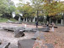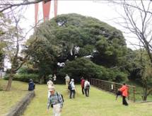 尾根幹線道路の下を潜って北側に抜けると、高校野球の予選を行う一本杉球場やテニスコートがあり、大きな石のモニュメントや天然記念物のスダジイの大木がある。
