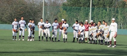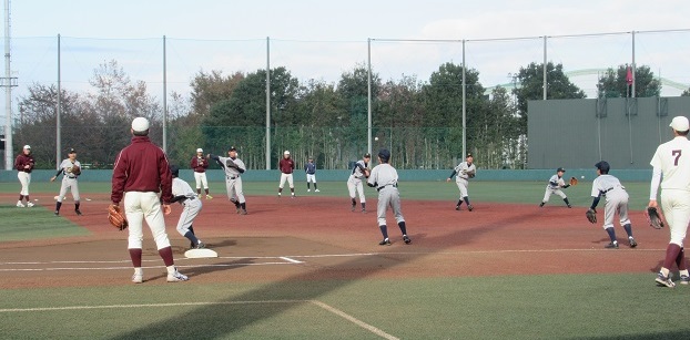 12月11日(日)早朝、冷え込み厳しい東伏見安部球場に野球部現役部員、OBに交じって我々西東京稲門会の6名も集結しました。
