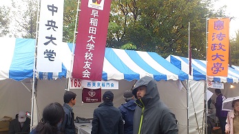 雨の中売れ行きが心配でしたが、昼過ぎの1時頃に完売しました。これも参加各位の熱心な(?)販売努力、古賀会長、大久保副会長を始めブースに立ち寄りお買い上げ頂いた当稲門会の皆様、他稲門会及び参加各位の友人の皆様のお陰です、ありがとうございました!