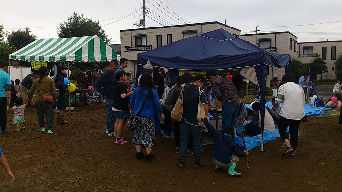 於:下野谷遺跡公園(東伏見)早朝からの雨で、公園での開催が危ぶまれていましたが、開始時刻の10時にはすっかり雨もあがり、子供たちや親子連れが続々と会場に集まってきました。