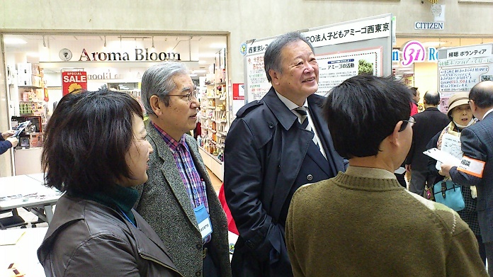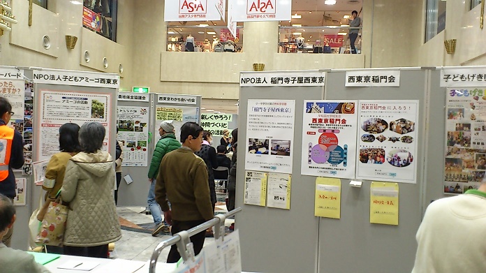 「西東京稲門会」(初参加)・「NPO稲門寺子屋西東京」の活動を、各団体に交じり例のパネルを展示してアピール。(精鋭4名がその任に、応援会員多数あり)