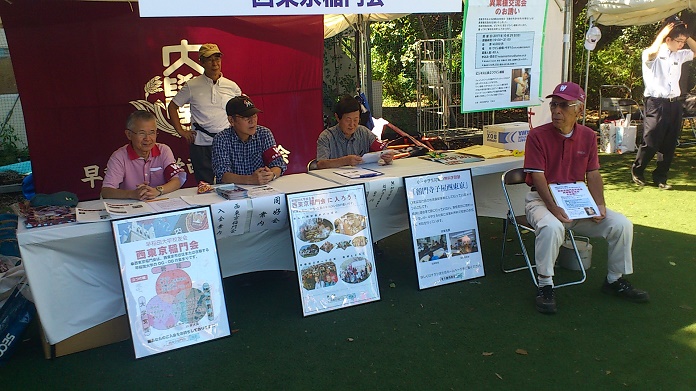また、来る11月12日の三多摩稲門会総会で上映する映画(最後の早慶戦)のパンフレットの配布も行うことが出来ました。小雨の中でも盛り上がりを見せた三多摩稲門会支部のブースでした。来年は、より多くの西東京稲門会の皆様のご来場をお待ちしています。
