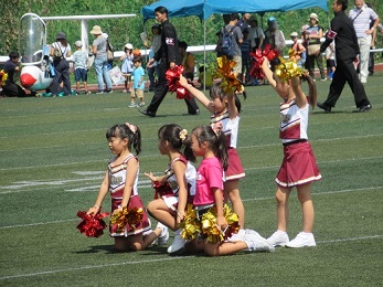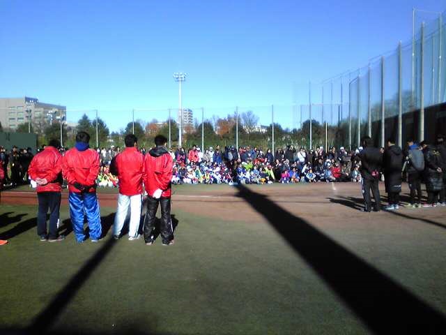 好天の下、爽やかな汗を流す子供たち。一方、寒風に震えて日溜りが恋しい我々6名。