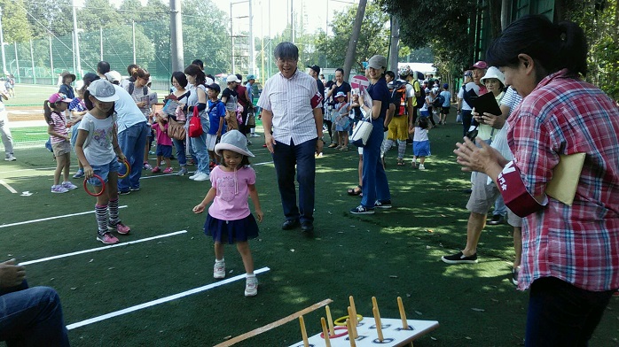 「ぞうさんチーム」「うさぎさんチーム」に分かれて競った輪投げ大会も盛り上がりました。