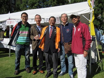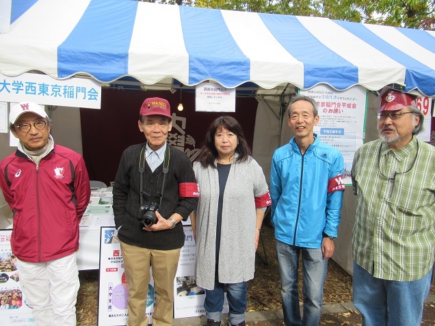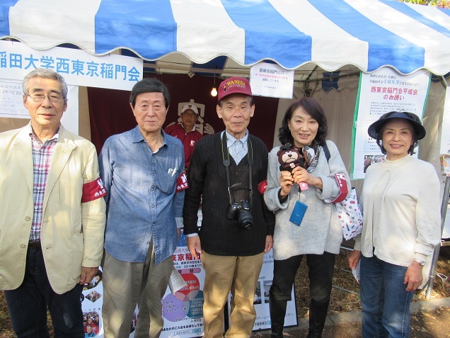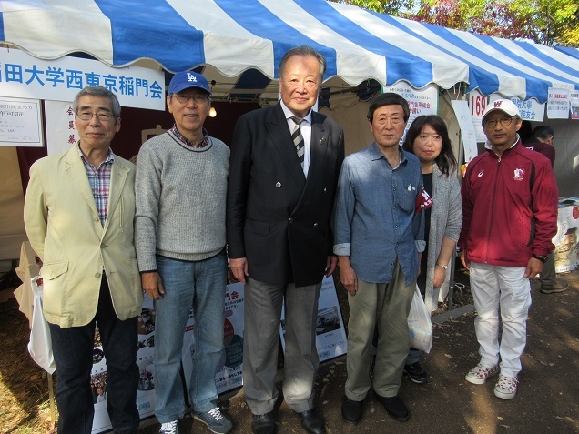 テントには小平稲門会の大島幹事長、明治大学校友会西東京市地域支部の鶴田副支部長兼幹事長、同小山幹事、それに早大鎌田総長の訪問などもあり、終始大盛況でした。