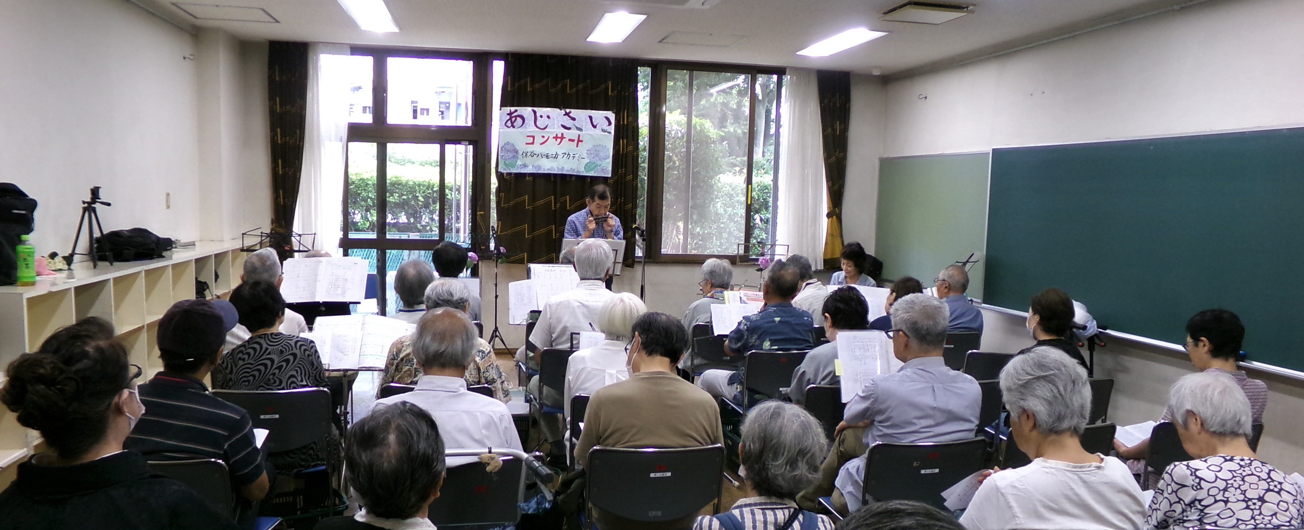 辻直邦会員が6月29日柳沢公民館で行なわれた保谷ハーモニカ・アカデミー主催の「第28回あじさいコンサート」に出演。
