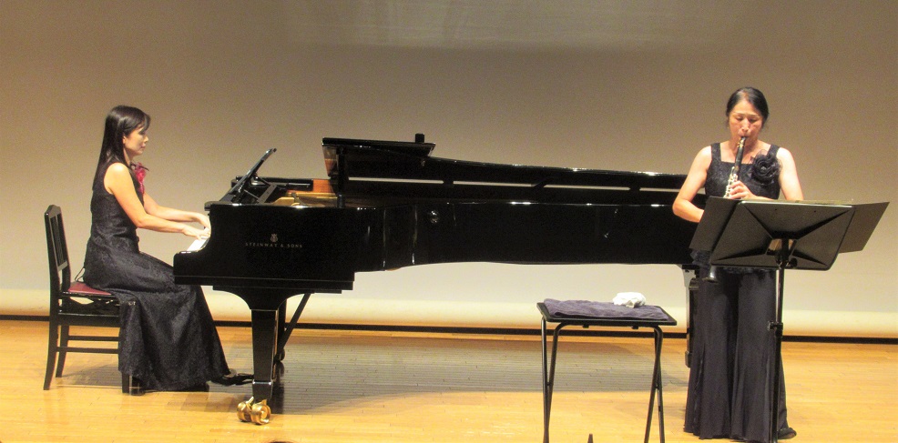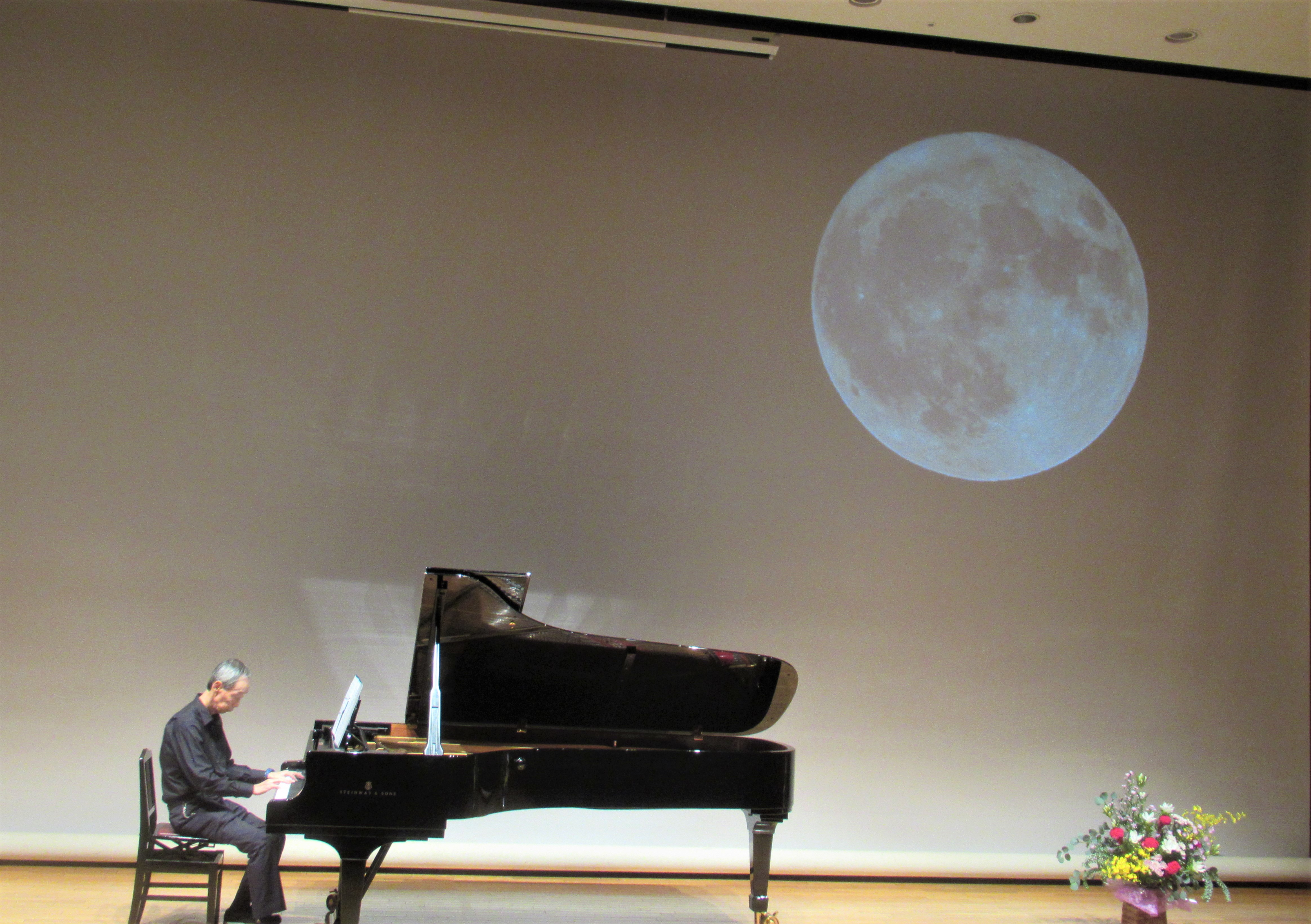 ピアノのソロ演奏のあと、ピアノとクラリネットの二重奏などプログラムも盛り沢山、最後に、来場者全員で童謡「故郷(ふるさと)」を合唱。(古賀良郎 記)